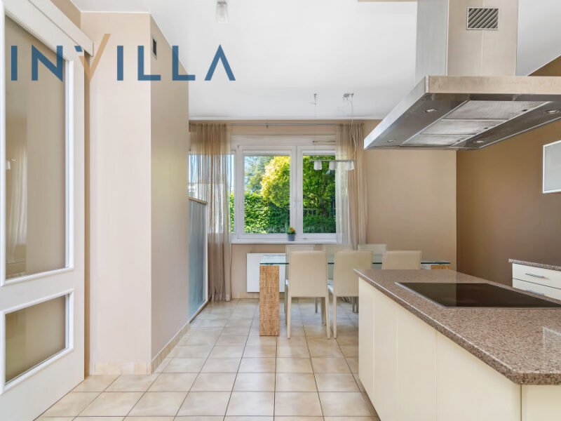 Do apartamentu przynależy ogród ok 40 m2, dwa miejsca postojowe w garażu podziemnym, taras z ogrodem zimowym, dwie komórki lokatorskie, balkon. Do oferty dodano przykładowy plan przearanżowania apartamentu.