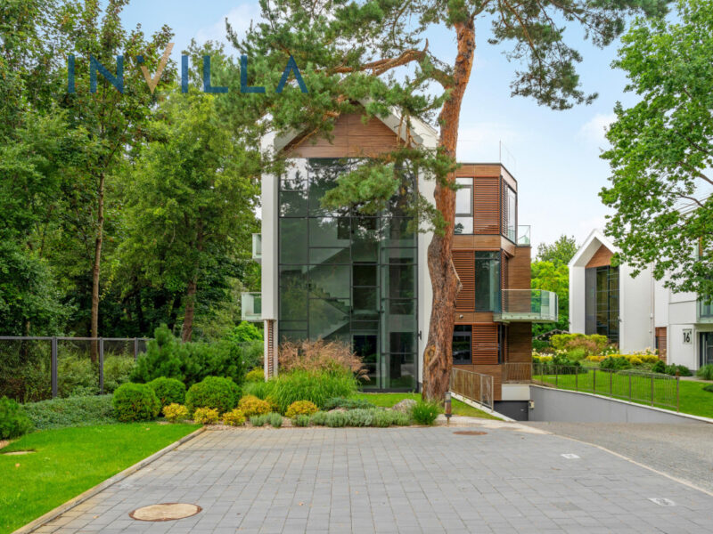 Budynek jest usytuowany na ogrodzonej działce, wyposażony w podziemną halę garażową, z której prywatną windą lub własną klatką schodową dostaniemy się na każdą kondygnację budynku. Ściany zostały wykonane z bloczków silikatowych, co gwarantuje izolację akustyczną oraz cieplną. W budynku wykorzystano ceramiczną dachówkę, okna aluminiowe trzyszybowe, instalacje inteligentnego domu. Budynek wyposażony jest w pompę ciepła. Cena wynosi 5 800 000 PLN netto (+ podatek VAT).