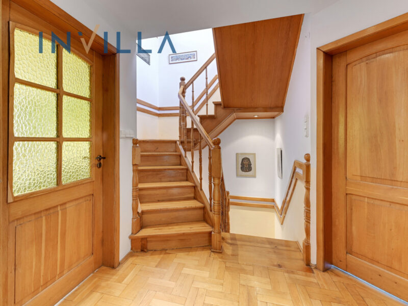 Podłogi, drzwi, schody oraz parapety wykończone drewnem dębowym.