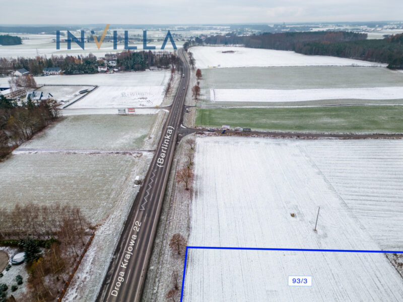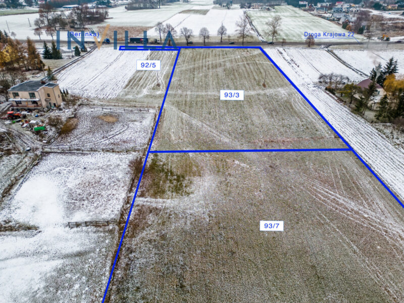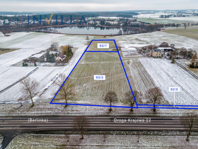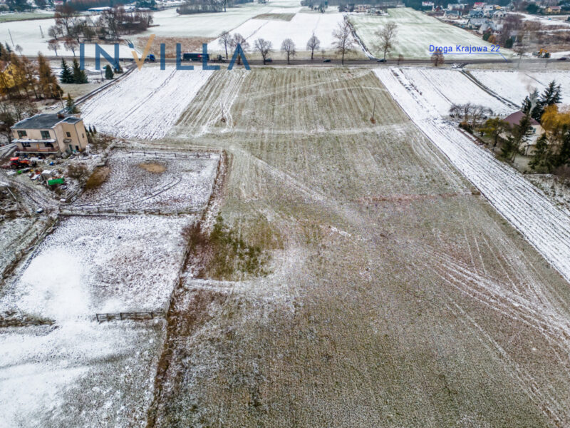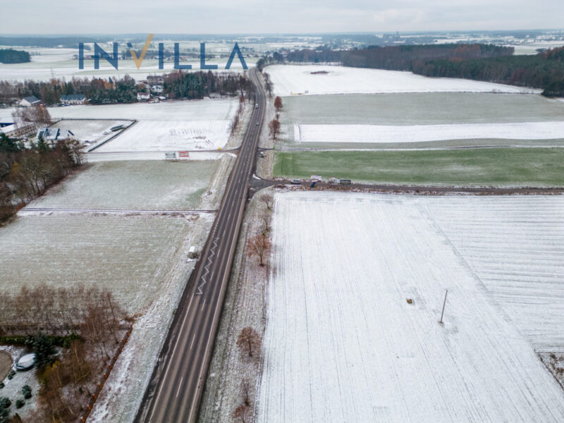Działka o powierzchni 10 200 m2 położona bezpośrednio przy drodze przeznaczona jest pod zabudowę mieszkaniowo- usługową i objęta jest Miejscowym Planem Zagospodarowania Przestrzennego (zaopatrzenie w wodę z gminnej sieci wodociągowej, zaopatrzenie w energię cieplną z niskoemisyjnych źródeł ciepła, zaopatrzenie w energię elektryczną z sieci elektroenergetycznej, odprowadzenie ścieków docelowo do kanalizacji sanitarnej). Powyższa działka graniczy z działką rolną o powierzchni 10 000 m2 ze zgodą na przekwalifikowanie na działkę usługowo-mieszkaniową.