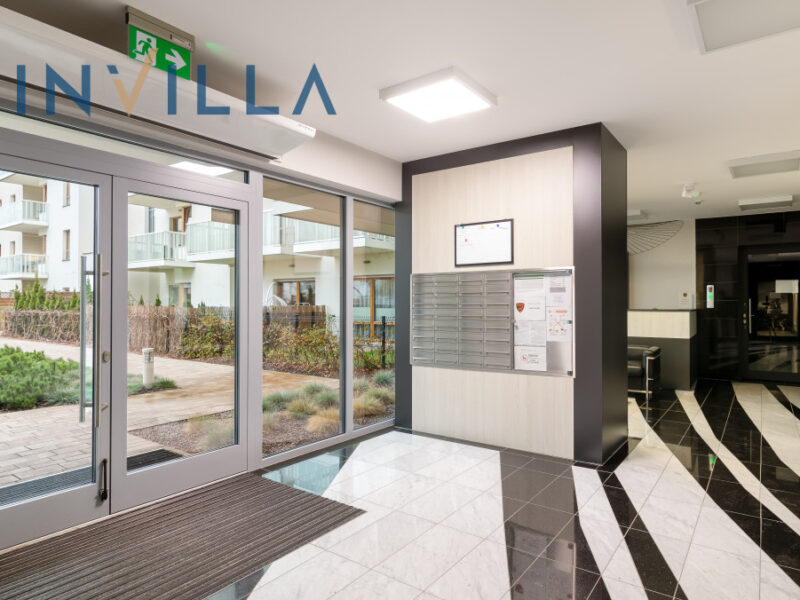 Apartament znajduje się na 4 piętrze, 4-piętrowego apartamentowca z 2017 roku wyposażonego w windę, zabezpieczonego systemem monitoringu i całodobową ochroną. Usytuowanie mieszkania w budynku sprawia, że jest ciche.