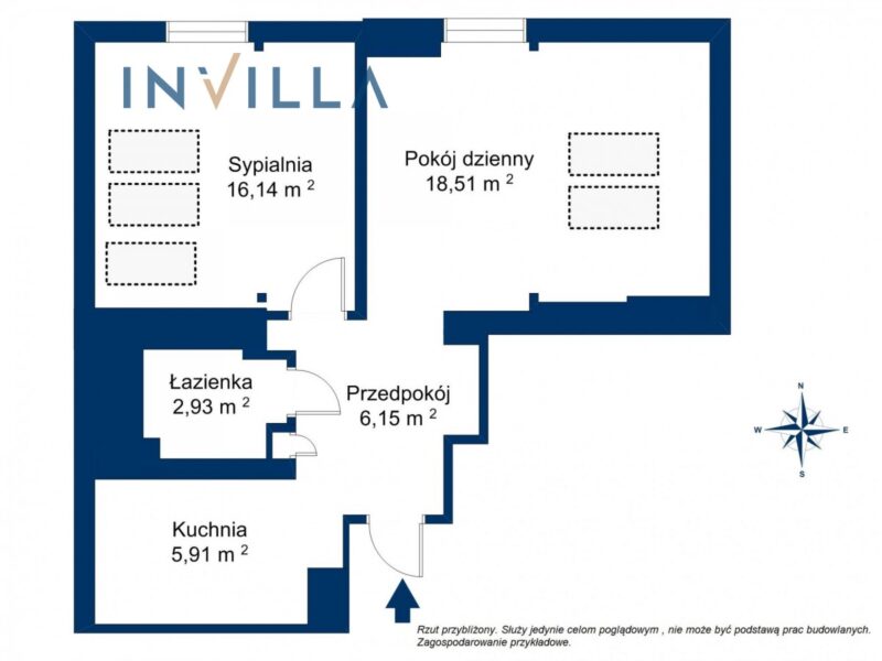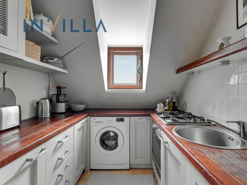 Pokój dzienny (ponad 18 m2) to przestrzeń do wypoczynku oraz część jadalniana. Tuż obok wejście do sypialni (16m2) z podwójnym łóżkiem, uroczym, bulajowym oknem, obszerną zabudowaną szafą oraz wydzieloną strefą do pracy. Łazienka jest także jasna z wanną i toaletą. Oddzielna, jasna kuchnia to przestrzeń niespełna 7m2 gdzie swoje miejsce znalazła także pralka.