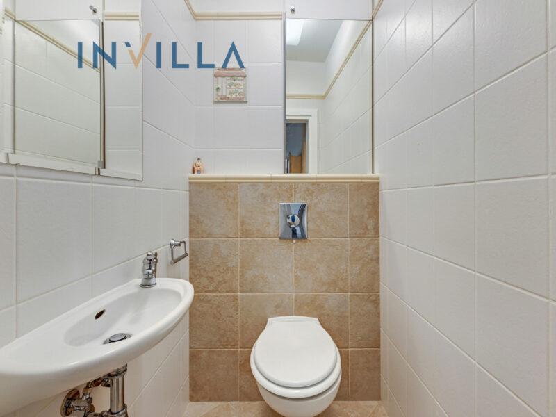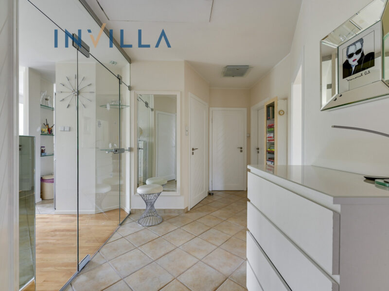Druga przestrzeń apartamentu to odseparowane korytarzem dwie sypialnie, oraz gabinet lub pokój gościnny oraz łazienka i oddzielna toaleta. Dodatkowym pomieszczeniem pozwalającym na zachowanie porządku mieszkańców jest garderoba w holu .