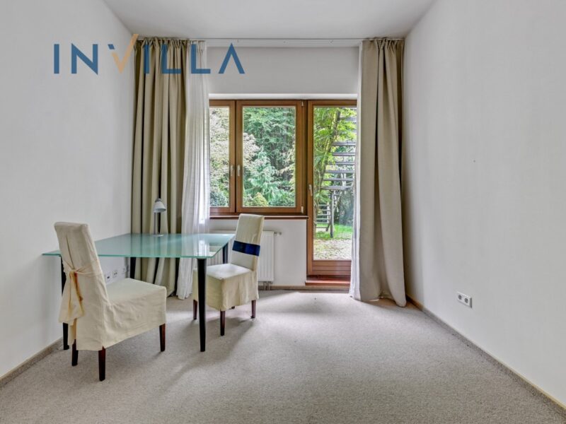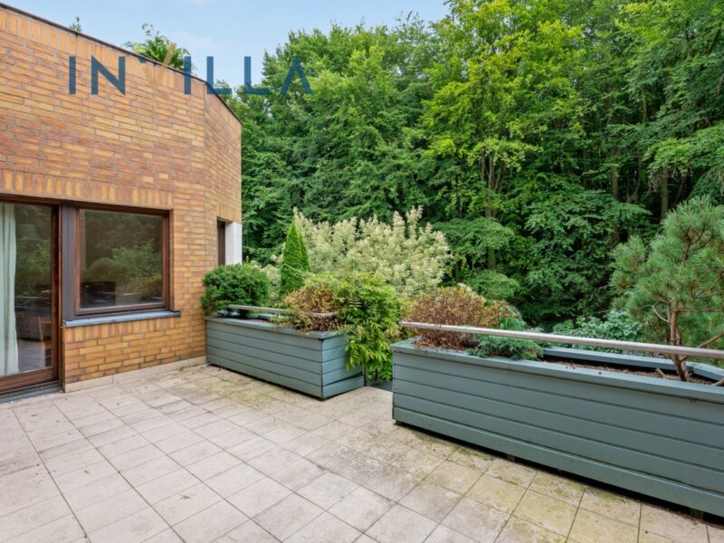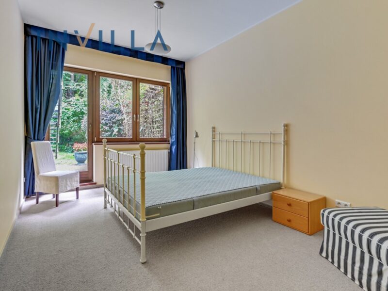Dwupoziomowy przestronny apartament z własnym ogrodem i bezpośrednim wyjściem do lasu dający poczucie życia w domu jednorodzinnym.