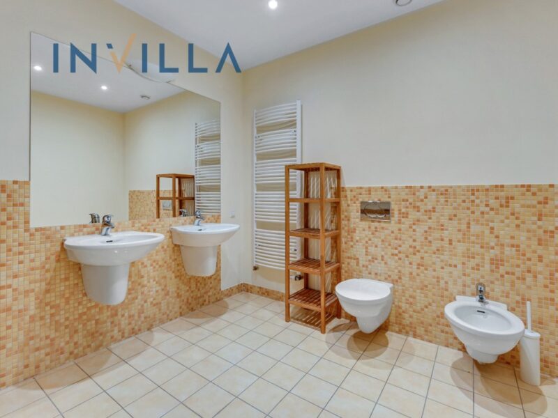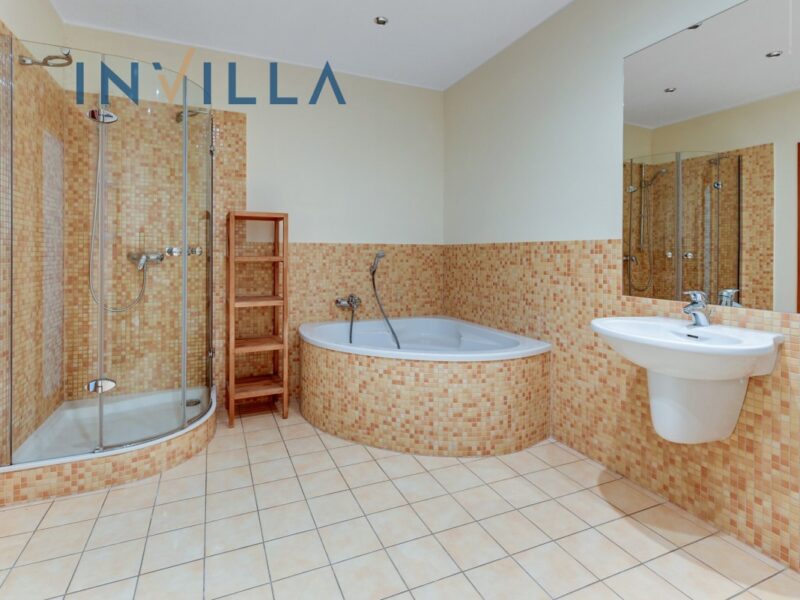 Ta nieruchomość pozwala odkryć zalety mieszkania w domu jednorodzinnym, a to dzięki dużym powierzchniom pomieszczeń. Ich wysokość jest także niestandardowa i bliżej jej do przedwojennych kamienic, bo wynosi prawie 3,0 m, co tym bardziej wzmaga poczucie przestrzeni. Kominek i duża ilość drewnianych przeszkleń to niespotykane aktualnie w nowym budownictwie rozwiązania, które potęgują uczucie luksusu w tym apartamencie. Także jego podział na część gościnną na pierwszym poziomie i prywatną na niższym nadaje intymności i charakteru własnego domu.