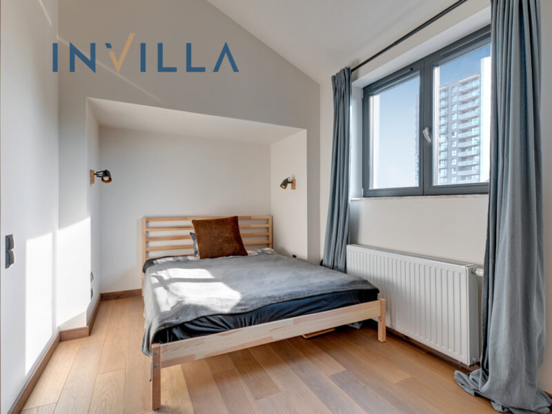 Mieszkanie bardzo dobrze doświetlone światłem dziennym dzięki dużym przeszkleniom. Składa się z salonu z aneksem kuchennym, sypialni, łazienki.