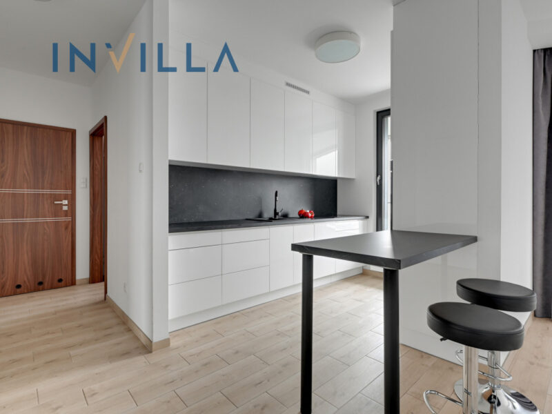 Apartament wyposażony jest w sprzęt AGD, zabudowa kuchenna polskiej firmy, podłoga drewniana.