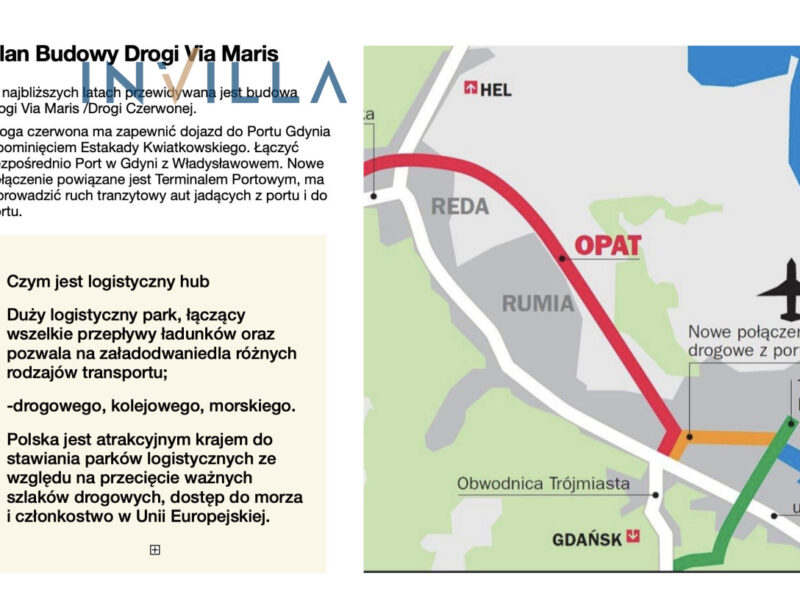 Położenie działki w pobliżu Portu Gdynia oraz planowane inwestycje w infrastrukturę drogową dodatkowo podnoszą jej atrakcyjność inwestycyjną.