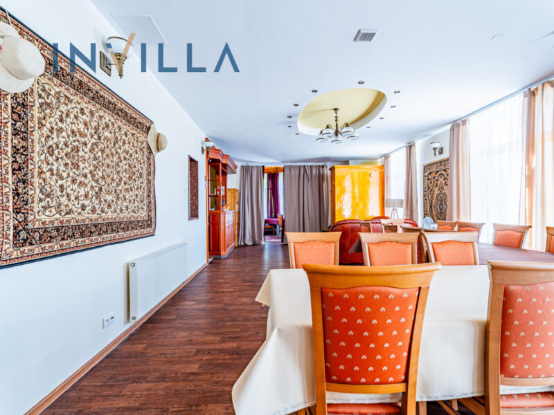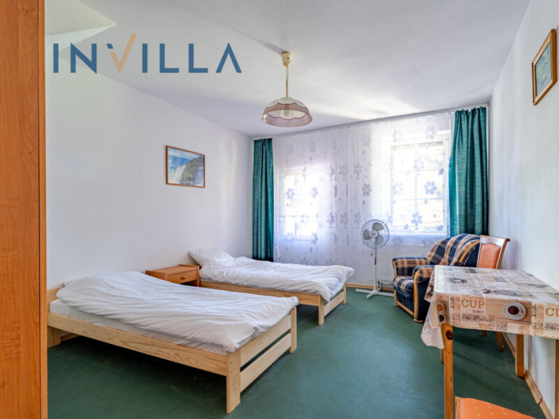 Pensjonat położony jest na dużej, ogrodzonej i zagospodarowanej działce o powierzchni 3 869 m2. Składa się z dwóch budynków o powierzchni użytkowej około 1 200 m2 stanowiącej: