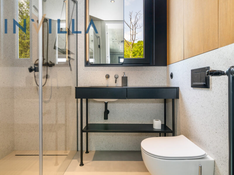 Apartament jest wykończony w bardzo wysokim standardzie, w stylu loftowym – duże przeszklenia, wysokie sufity, nowoczesne materiały i stonowana, elegancka kolorystyka. To osobny segment budynku, co gwarantuje maksymalną prywatność – brak bezpośredniego sąsiedztwa i piękne, naturalne otoczenie.