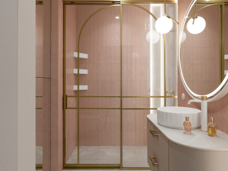 • łazienka z dużym prysznicem i przepięknym lustrem,