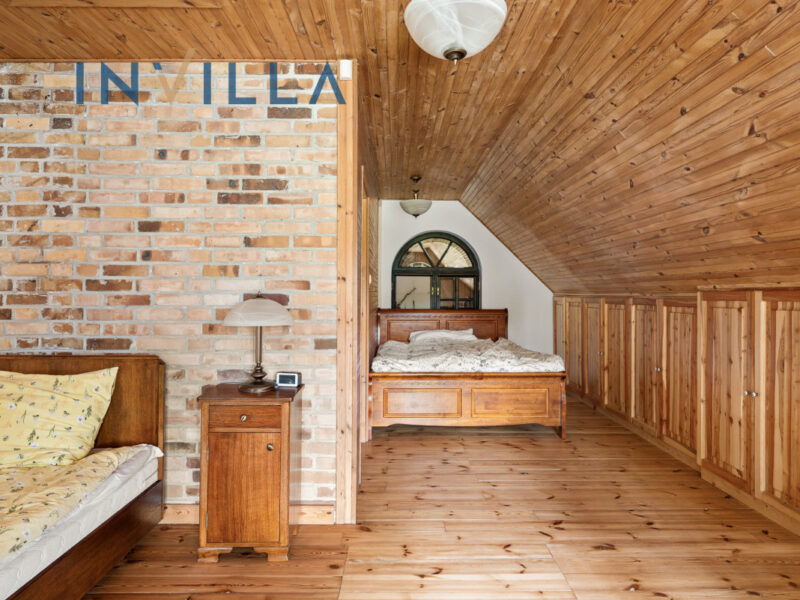 • Piętrowy murowany dom o powierzchni ok. 90 m2 z sauną wewnętrzną oraz garażem (ok. 25 m2).