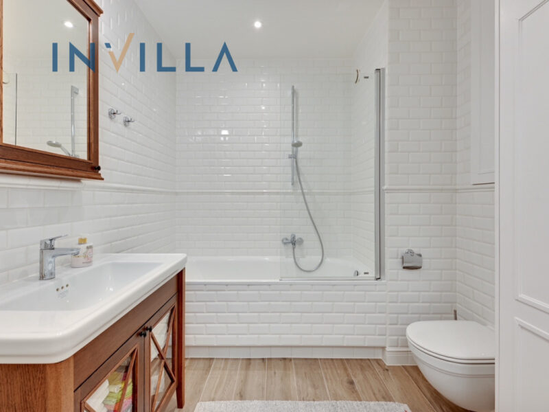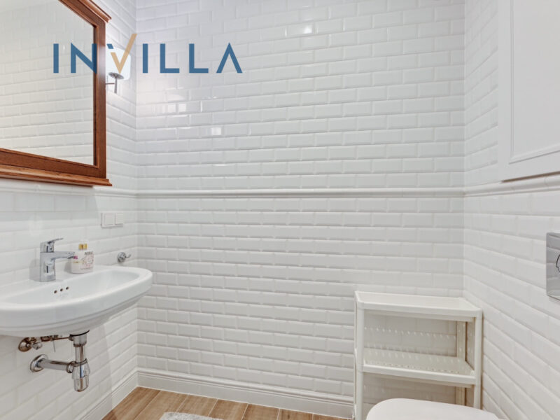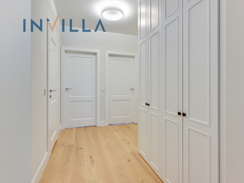 W centralnej części apartamentu znajduje się łazienka z wanną i toaletą, a po drugiej stronie oddzielna toaleta. Całość łączy korytarz z szafami w zabudowie, zapewniającymi dużo miejsca do przechowywania, zwieńczony przedpokojem, w którym zabudowana jest kolejna szafa.