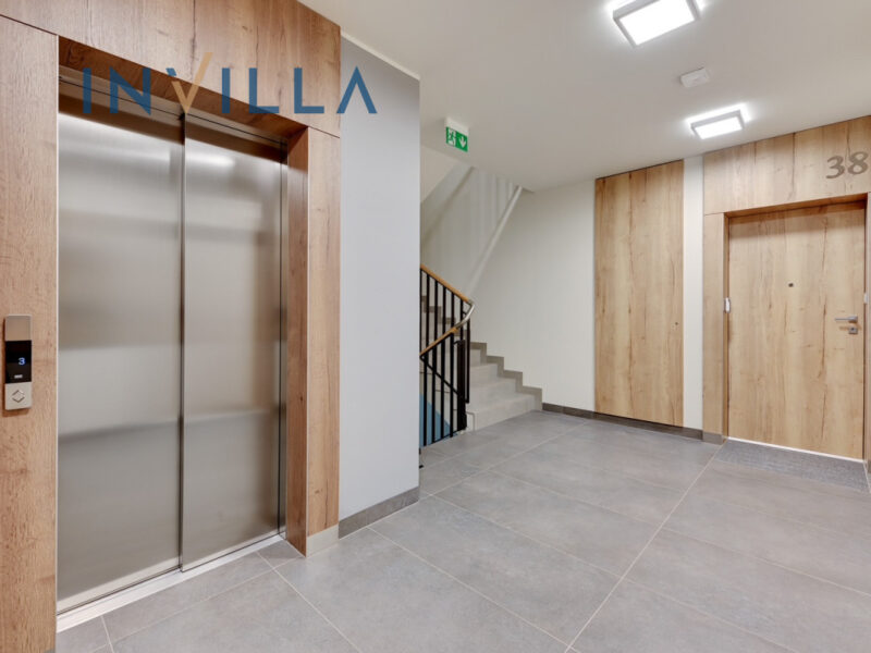 Nowoczesny budynek wyposażony został w cichobieżną windę z bezpośrednim zjazdem do hali garażowej. O bezpieczeństwo mieszkańców dba ochrona.