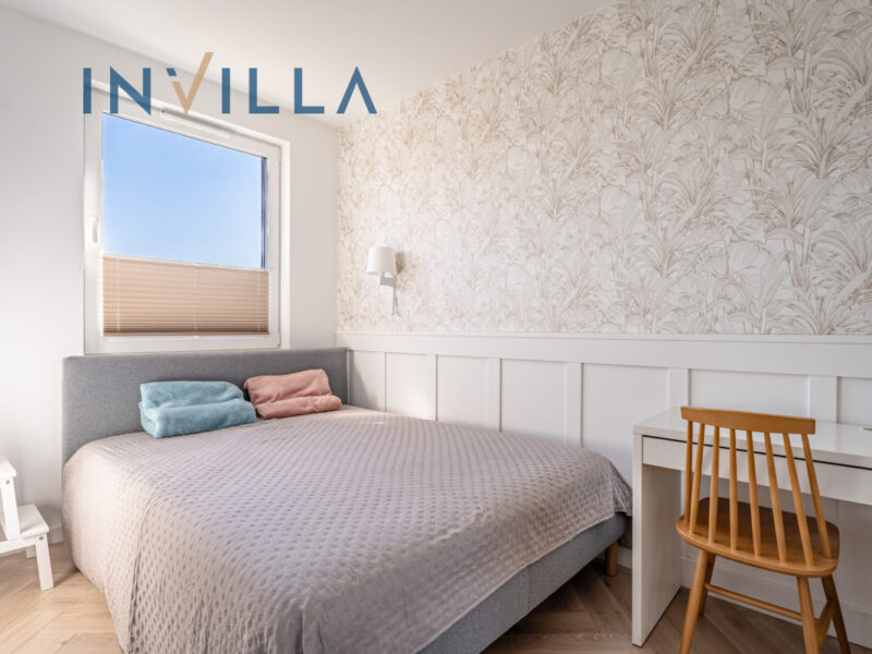 - sypialni z podwójnym łóżkiem, pojemną szafą i biurkiem – idealnie do pracy zdalnej,