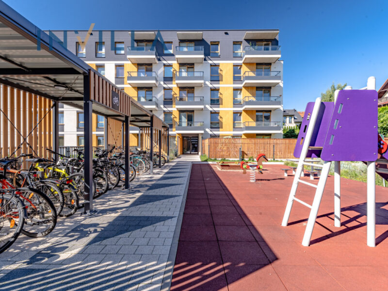Osiedle jest bardzo dobrze skomunikowane – w pobliżu znajdują się przystanki komunikacji miejskiej, co zapewnia szybki dojazd do centrum. W zasięgu spaceru dostępne są sklepy spożywcze (Żabka, Biedronka, Lidl), przychodnia, restauracje oraz klub fitness. Tuż obok budynku znajduje się plac zabaw oraz wiata rowerowa. Dla mieszkańców przeznaczony jest duży parking, dzięki czemu nie ma problemów z parkowaniem.