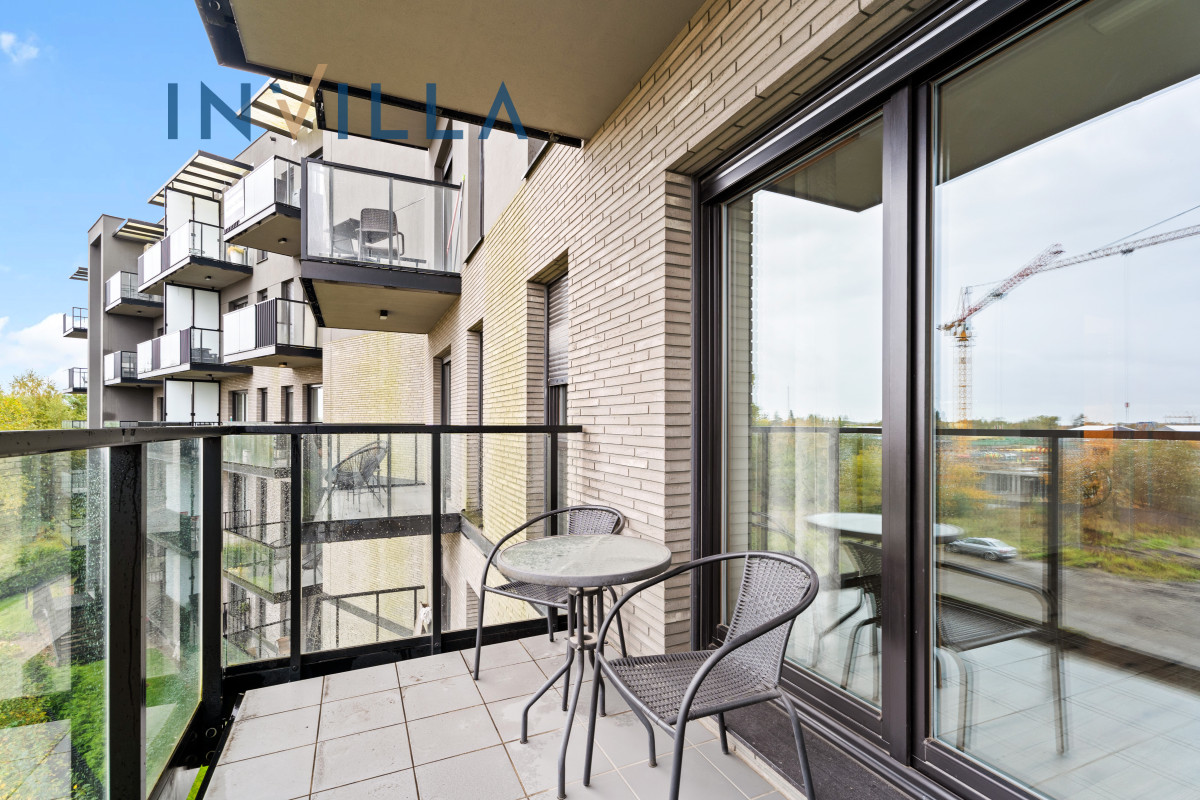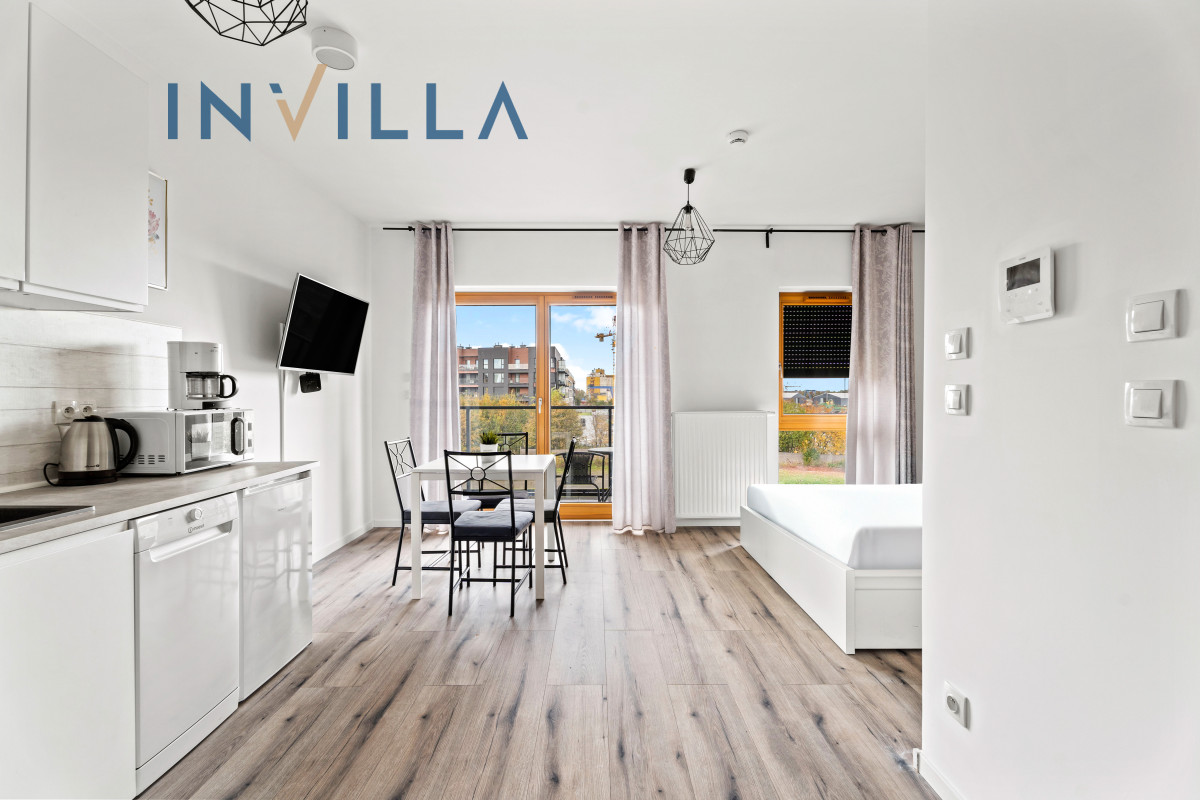 Lokal składa się z jasnego pokoju z łóżkiem małżeńskim, stołem, krzesłami i telewizorem, wyposażonego aneksu kuchennego oraz łazienki z prysznicem i pralką. Balkon z kompletem mebli oraz elektryczne rolety zapewniają wygodę i prywatność.