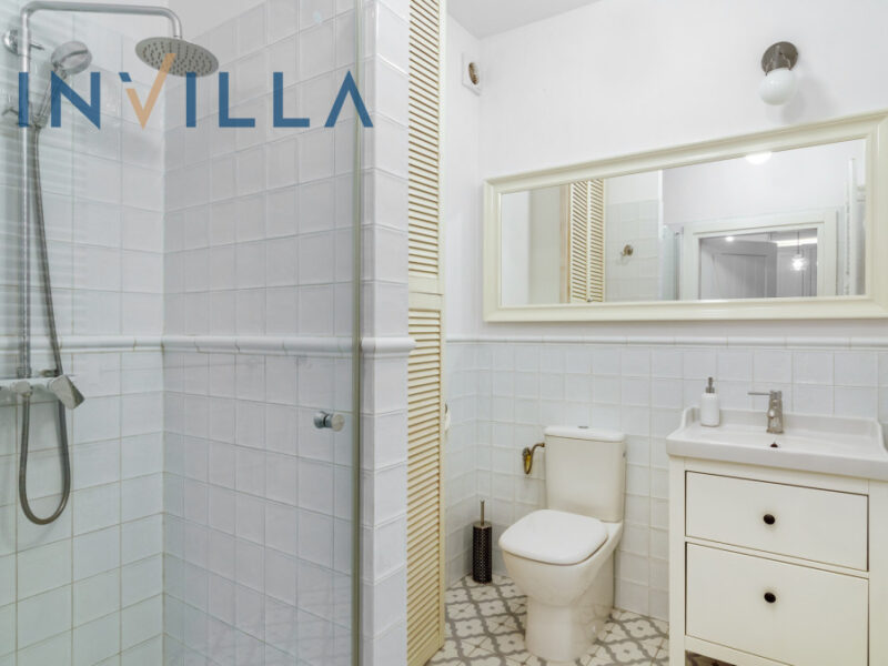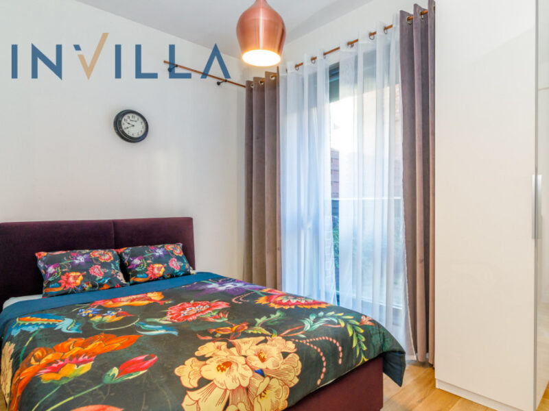 Mieszkanie jest w pełni urządzone i wyposażone – gotowe do zamieszkania. Znajdziemy tutaj m.in. klimatyzację, opuszczane automatycznie rolety, TV, piekarnik z funkcją mikrofali, zmywarkę, pralko-suszarkę i sporą kabinę prysznicową.