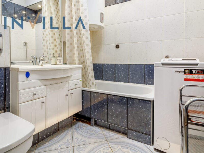Mieszkanie jest dwustronne, jasne, zadbane, w pełni umeblowane (rozkładana kanapa, podwójne łóżko, pojemna szafa, regały, biurko, stół z krzesłami, fotel) i wyposażone w sprzęty AGD (lodówka, kuchenka elektryczna z piekarnikiem, okap, zmywarka, pralka, 50-calowy telewizor).