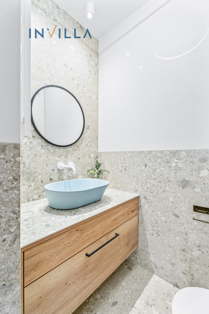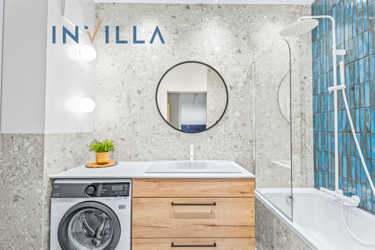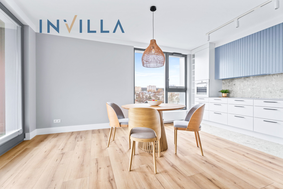 Mieszkanie znajduje się na ósmym piętrze budynku. Jest nowe, wyposażone we wszystkie najpotrzebniejsze rzeczy i wykończony z najlepszych materiałów w ciepłej, jasnej kolorystyce. Całość́ łączy atrakcyjnie wizualną przestrzeń z funkcjonalnością̨ i interesującym designem. Wszystkie elementy mieszkania funkcjonują̨ ze sobą w harmonii i spójnej estetyce.