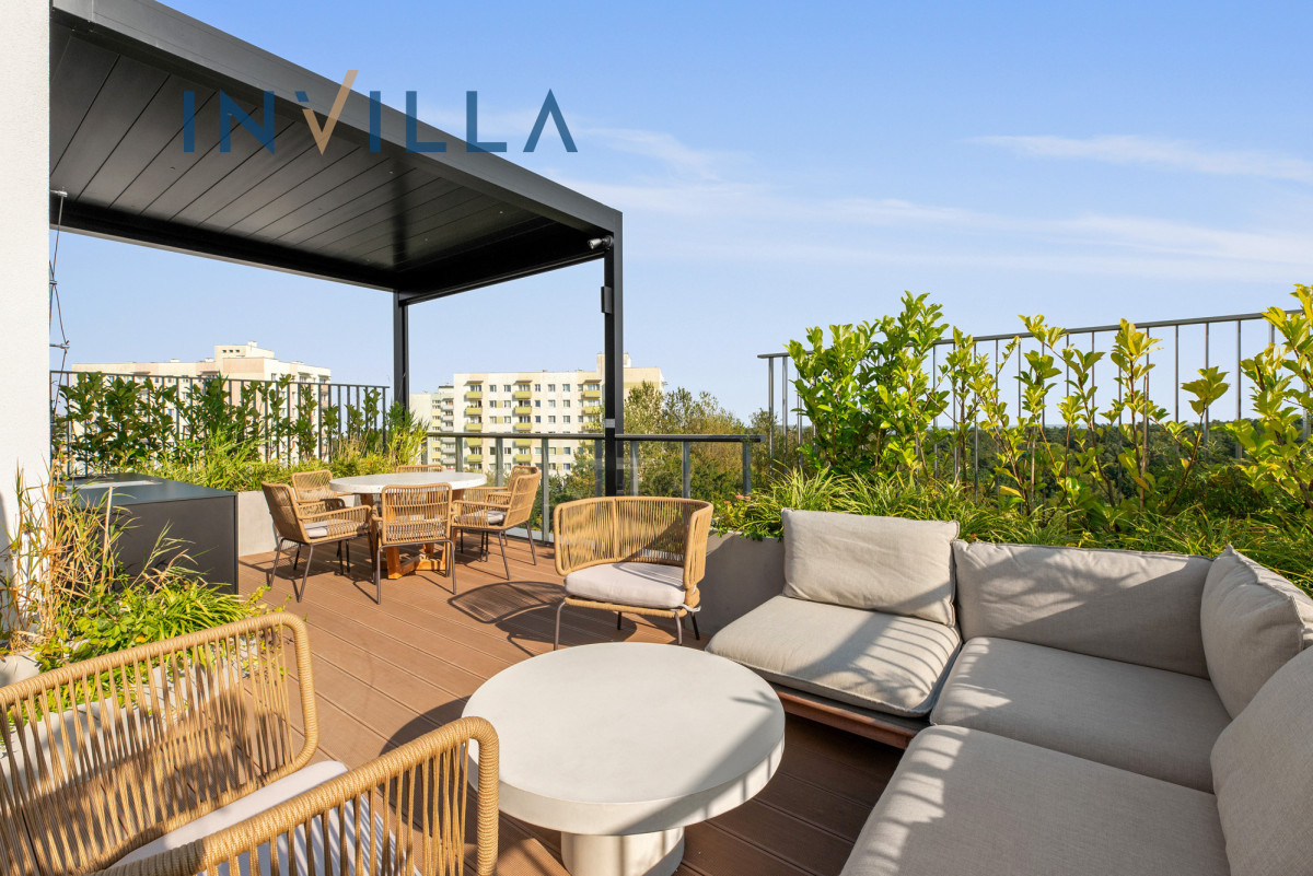 Małokacka to nie tylko nowoczesna, odzwierciedlająca najnowsze trendy, architektura. Na szczycie 12-piętrowej dominanty architekci zaaranżowali tylko dla mieszkańców prywatny zewnętrzny taras z placem zabaw i miejscem przeznaczonym na relaks, z którego rozpościerają się niesamowite widoki na panoramę Gdyni oraz Zatokę.