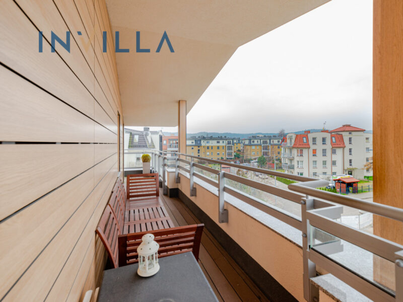 Apartament położony na ostatniej kondygnacji z tarasem okalającym go prawie w całości, na który dostaniemy się z salonu oraz sypialni. Zaprojektowany i wykończony w nowoczesnym stylu z dbałością o każdy detal.