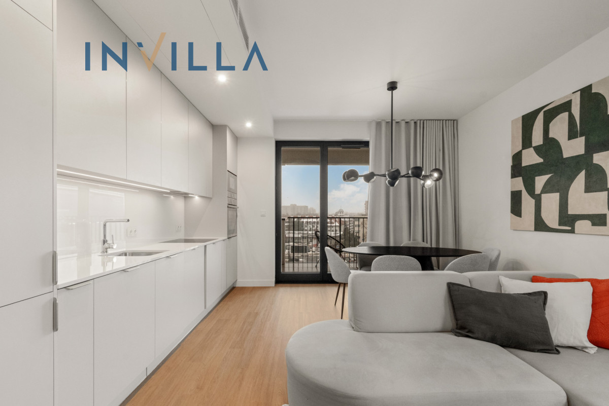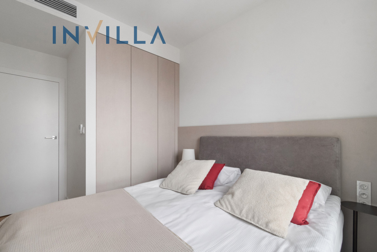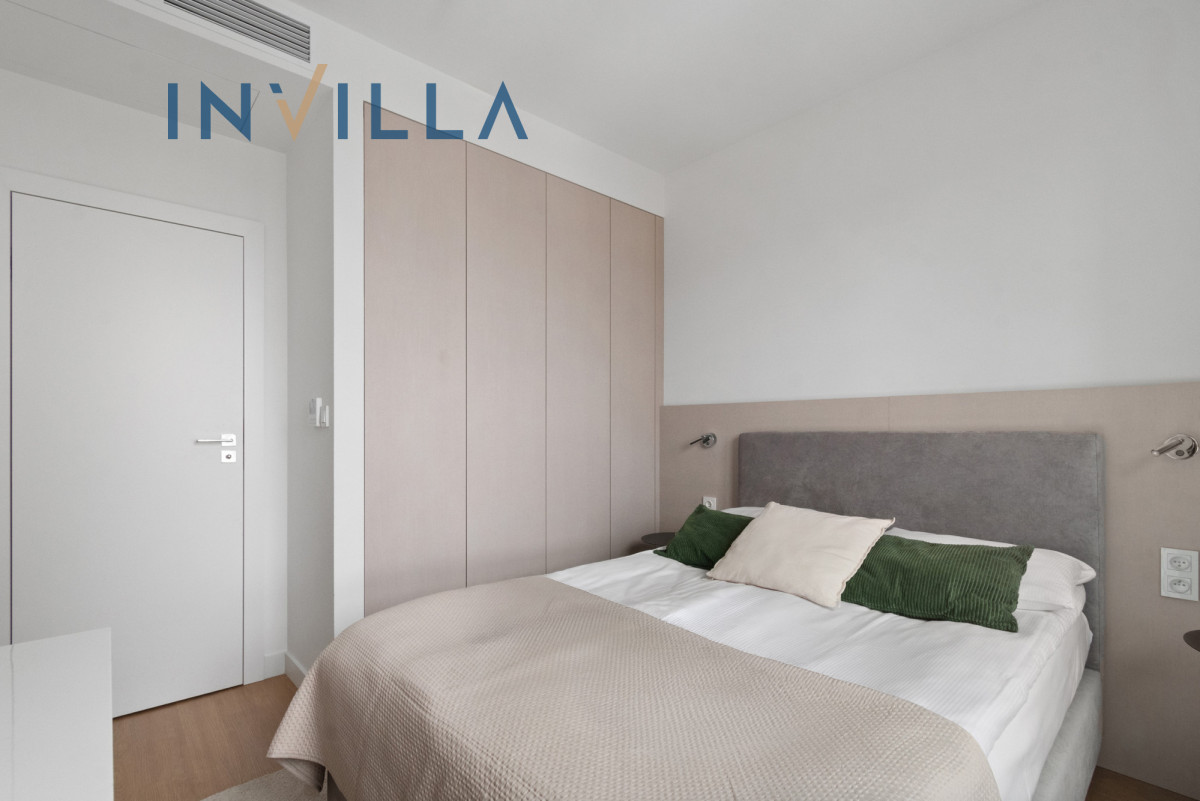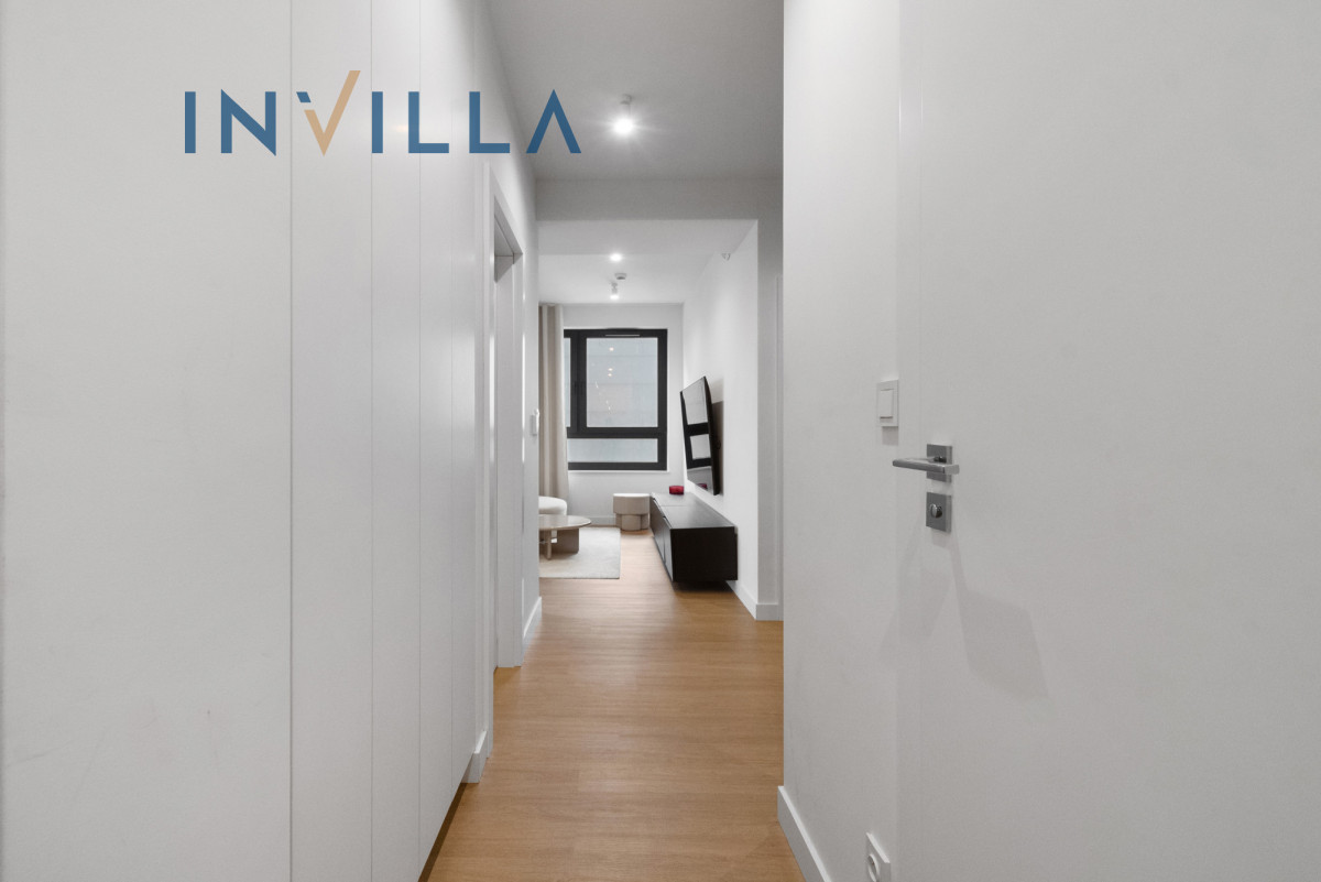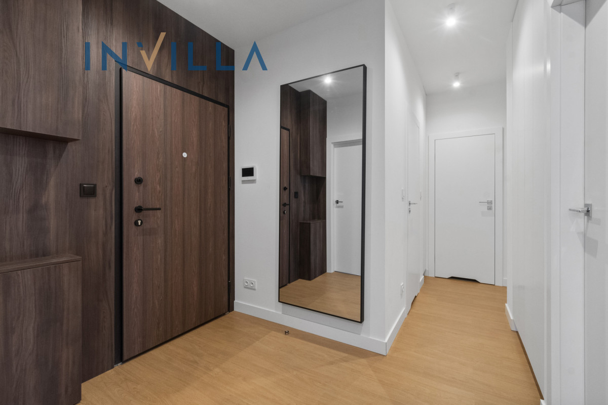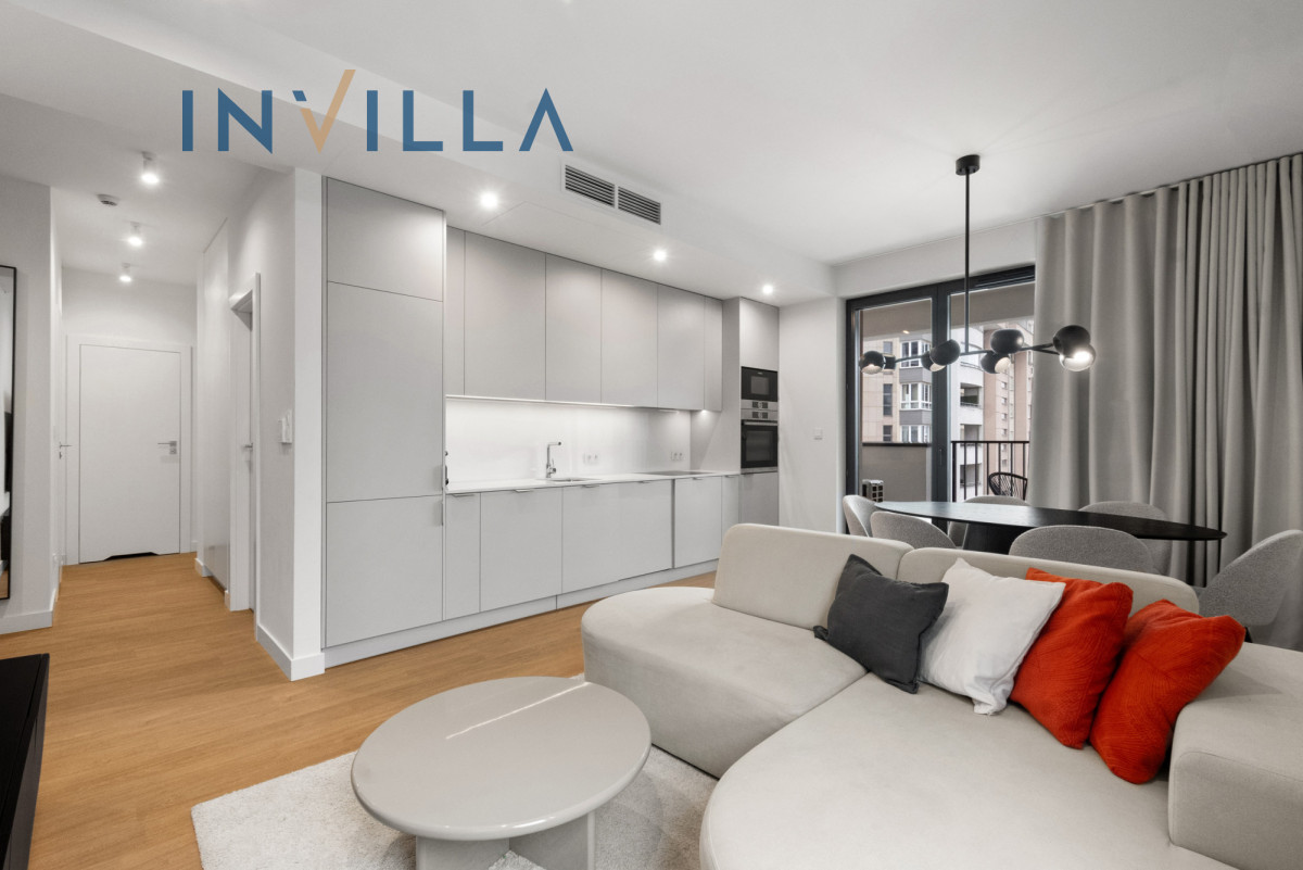 Mieszkanie posiada pełną zabudowę kuchenną oraz komplet sprzętów AGD. Dodatkowym atutem jest centralna klimatyzacja zapewniająca komfort o każdej porze roku. Funkcjonalny, przemyślany układ oraz dwustronna ekspozycja gwarantują doskonałe doświetlenie wnętrz. Układ pomieszczeń: