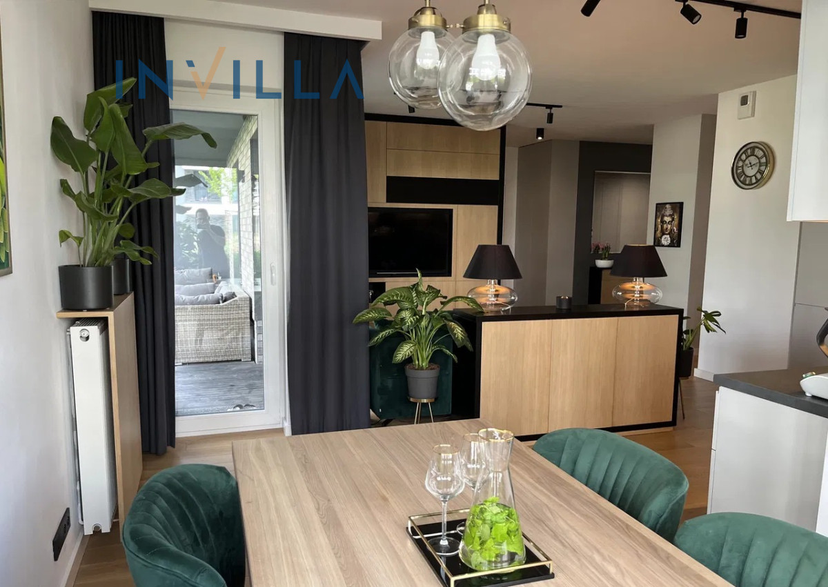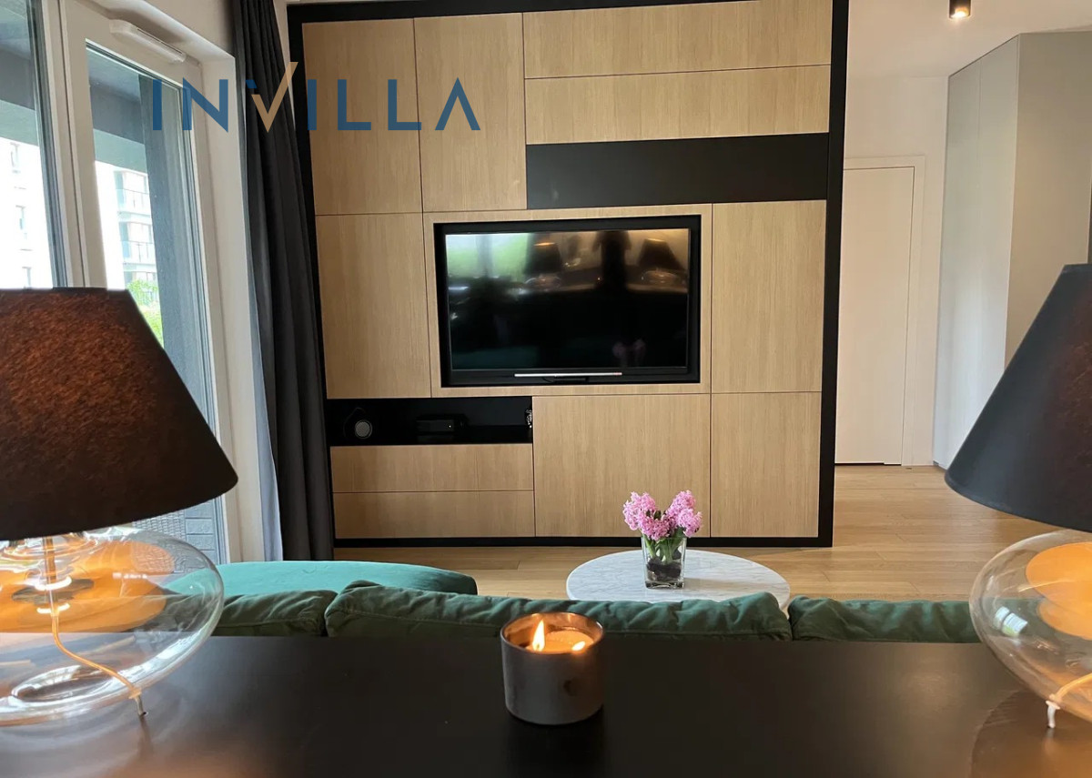 Mieszkanie jest wykończone w wysokim standardzie, umeblowane i gotowe do zamieszkania. Dominują naturalne kolory, drewniana podłoga, eleganckie oświetlenie i funkcjonalne rozwiązania architektoniczne. Możliwość zmiany sofy na inną w salonie.