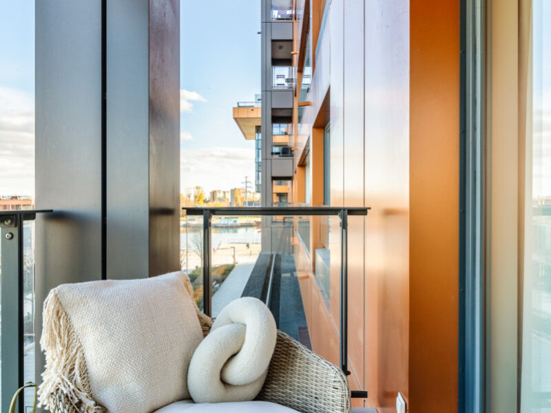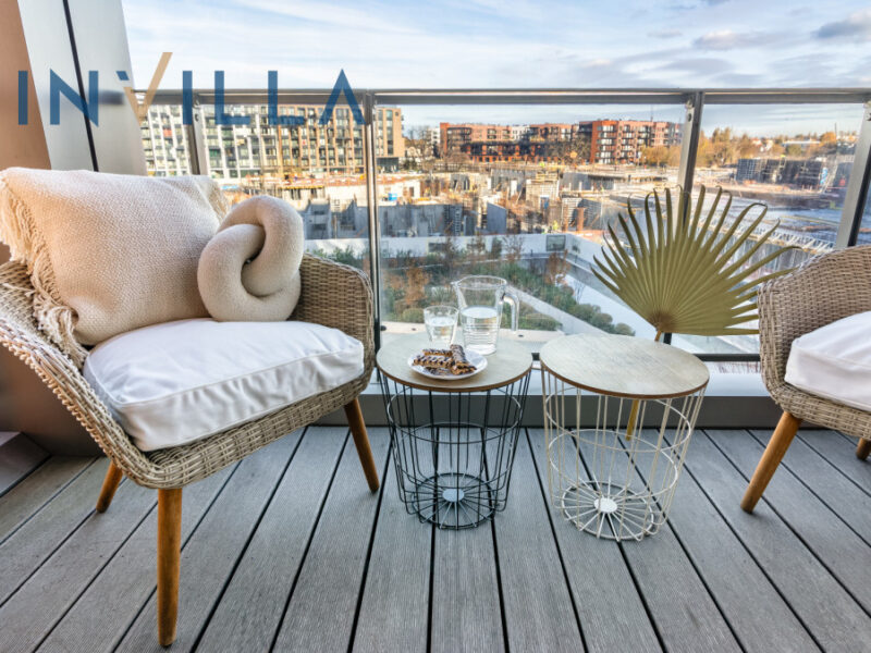 Mieszkanie zostało zaaranżowane w bardzo przemyślany sposób i przy użyciu materiałów wysokiej jakości – drewniane podłogi, eleganckie kafle w łazience, armatura renomowanych firm, całości dopełniają unikatowe meble. Mieszkanie sprzedawane jest z całym wyposażeniem, jest słoneczne i jasne – okna wychodzą na zielone patio zewnętrzne, a z balkonu widać Motławę.