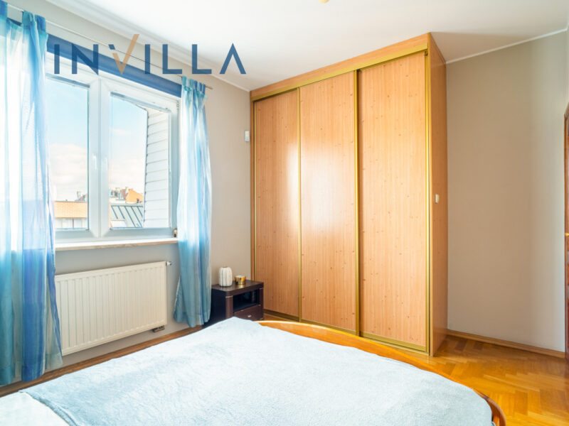 Apartament znajduje się na czwartym, ostatnim piętrze budynku i oferuje piękny widok na dachy zabytkowych kościołów.