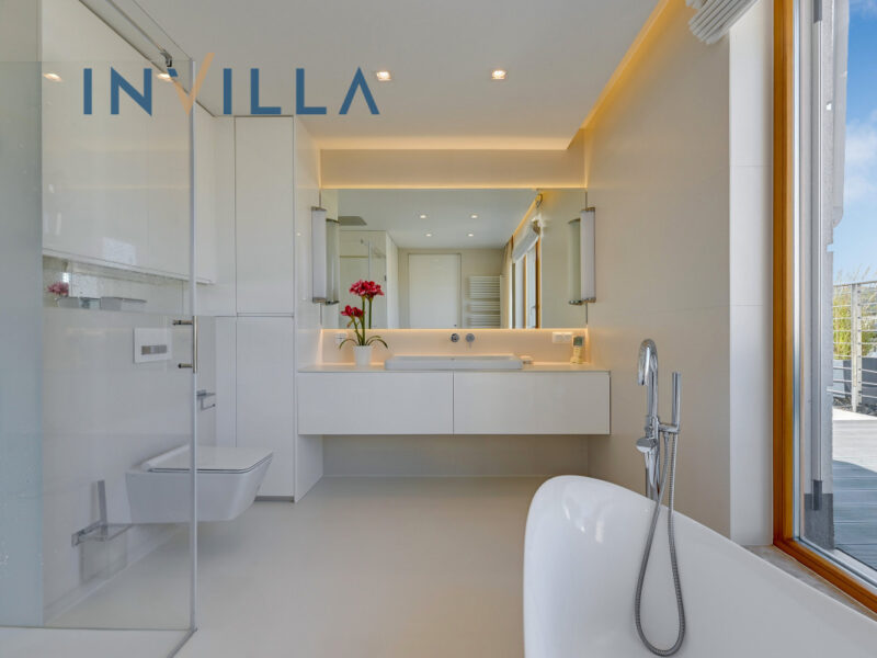 • Technologie: Inteligentny system zarządzania KNX, umożliwiający zdalne sterowanie ogrzewaniem podłogowym, oświetleniem, roletami, markizami i pergolą – wszystko obsługiwane za pomocą iPada lub telefonu.