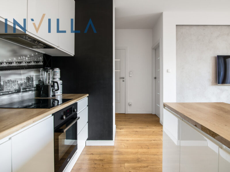 Mieszkanie jest dobrze doświetlone i wykończone z dbałością o detal, w tym meble robione na wymiar, sprzęty AGD wysokiej jakości oraz funkcjonalny układ wnętrza.