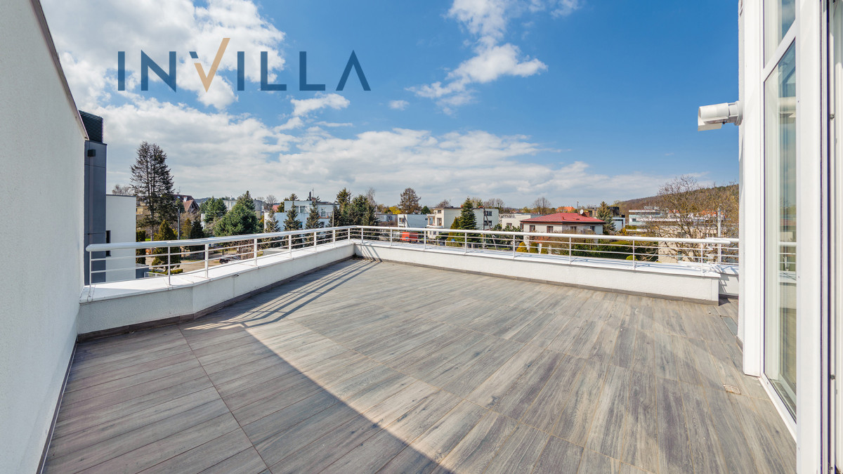 – sypialnia, toaleta, garderoba, pokój zimowy, aneks gospodarczy, duży 70 m2 taras z ekspozycją praktycznie w każdym kierunku świata, zapewniającą słońce przez cały dzień.