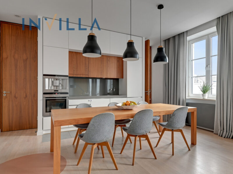 Wykończenie wnętrz zostało starannie zaprojektowane, aby podkreślić unikalny charakter mieszkania, łączącego nowoczesne udogodnienia i elegancję z historią miejsca.
