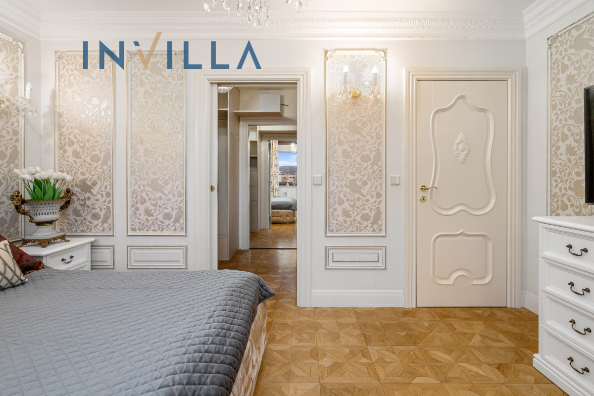 Luksusowy 110-metrowy apartament gdzie wnętrze zostało zaprojektowane przez architekta, z dbałością o pełną spójność stylistyczną. Dominuje tu klasyka, szlachetne materiały, eleganckie sztukaterie. Naturalny dębowy parkiet ułożony został w elegancki wzór, a w całym mieszkaniu zainstalowano wysokiej klasy oświetlenie. Całość tworzy przestrzeń ponadczasowej: elegancka klasyka, która jest niezwykle reprezentacyjna.