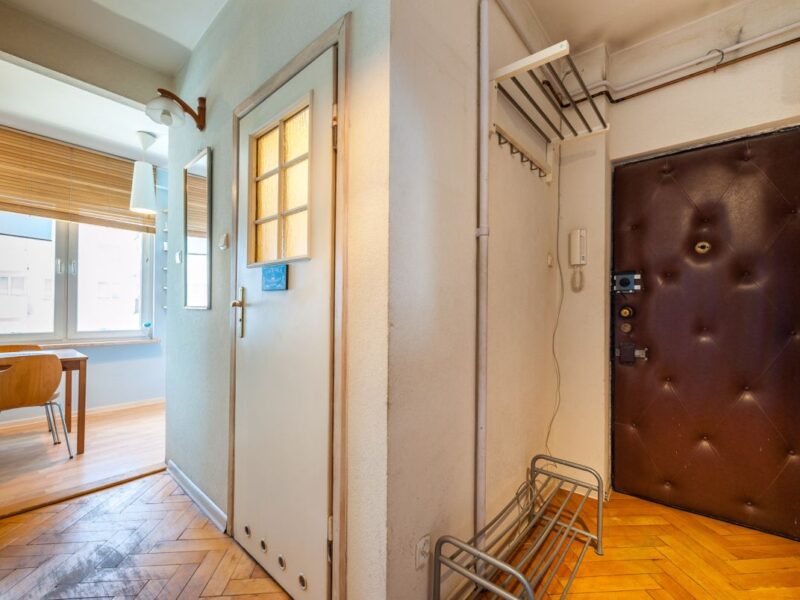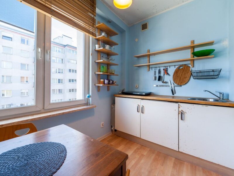 Mieszkanie mieści się na czwartym piętrze w sześciokondygnacyjnej kamienicy. Składa się z przestronnego pokoju, osobnej, funkcjonalnej kuchni, łazienki i przedpokoju. Jasny lokal z dużymi oknami wychodzącymi na wschód, które wpuszczają naturalne światło przez większą część dnia, tworząc przytulną atmosferę. Do nieruchomości przynależy przestronna piwnica, idealna do przechowywania.