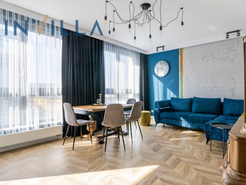 Apartament znajduje się na czwartym piętrze budynku. Jest praktycznie nowy, wyposażony we wszystkie najpotrzebniejsze rzeczy i wykończony z najlepszych materiałów w ciepłej, jasnej kolorystyce. Całość́ łączy atrakcyjnie wizualną przestrzeń z funkcjonalnością̨ i interesującym designem. Wszystkie elementy mieszkania funkcjonują̨ ze sobą w harmonii i spójnej estetyce.