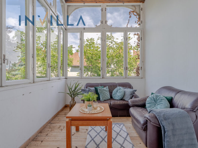 – sześć dużych, słonecznych pokoi z aneksami kuchennymi oraz z dużymi oknami (jeden z wyjściem na balkon oraz drugi pokój mający dostęp do uroczej, drewnianej werandy, z której można podziwiać ogród i otaczającą zieleń – jest to niewątpliwie dodatkowy letni pokój),