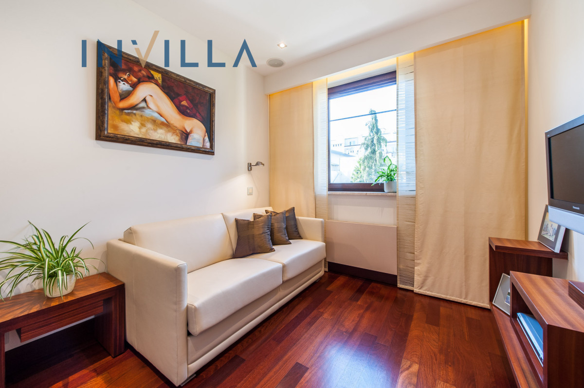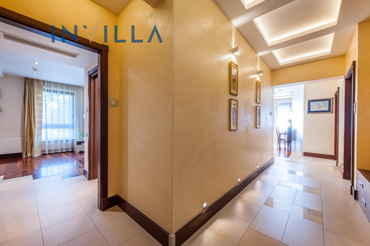 Elegancki apartament o powierzchni 132 metrów kwadratowych, położony na pierwszym piętrze. Główną część wnętrza stanowi przestronny salon, o południowej i zachodniej ekspozycji, z częścią wypoczynkową i jadalnianą oraz balkonem. Bezpośrednio obok znajduje się duża kuchnia, ze stylową wyspą i wysokiej jakości zabudowami, a także częścią dedykowaną pod codzienne spożywanie posiłków. Kolejnym atutem mieszkania jest sypialnia w konwencji tzw. master bedroom, z własną łazienką z jacuzzi, garderobą, balkonem oraz wydzieloną częścią do pracy. Dopełnieniem całości jest pokój gościnny, druga łazienka z częścią gospodarczą oraz spinający całość przestronny korytarz, będący osią komunikacyjną całego mieszkania. Wnętrza wykonane z dbałością o detale, z wysokiej jakości materiałów, przy jednoczesnym nacisku kładzionym na wysoką funkcjonalność. Apartament posiada system klimatyzacji, ogrzewanie podłogowe, rozbudowany system oświetlenia oraz wiele innych udogodnień. Na podłogach włoski gres, drewno Jatoba oraz Merbau. Kuchnia drewniana, w pełnej zabudowie ze sprzętami Siemens, Electrolux oraz Liebherr, z granitowym wykończeniem cokołów i blatów.