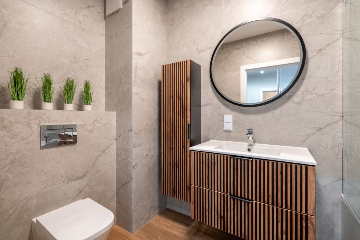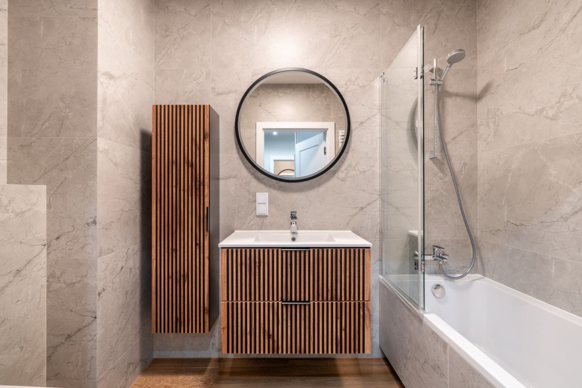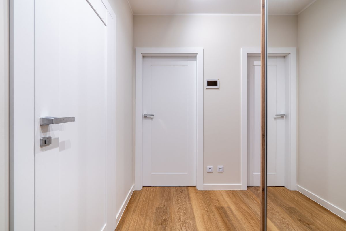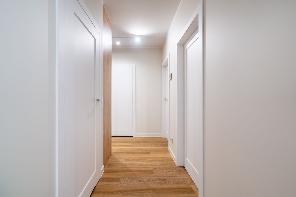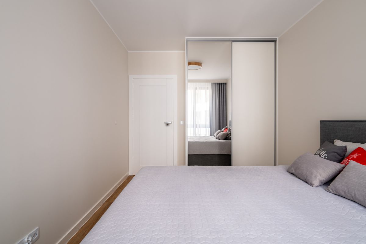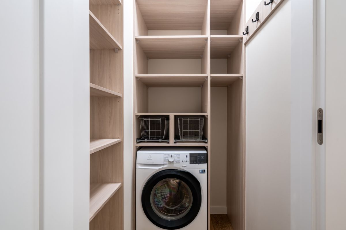 Eleganckie mieszkanie o powierzchni 61,55 metra kwadratowego, z zachodnią ekspozycją, położone na drugim piętrze. Główną część wnętrza stanowi przestronny salon z częścią wypoczynkową i funkcjonalnym aneksem oraz dużym balkonem. Bezpośrednio obok znajduje się dwie sypialnie z zabudowanymi szafami. Łazienkę wyposażono zarówno w wannę jak i prysznic . Dopełnieniem całości jest przestronny korytarz, będący osią komunikacyjną całego mieszkania oraz dodatkowe pomieszczenie gospodarcze z pralką, z możliwością instalacji WC. Wnętrza wykonane pod klucz z dbałością o detale, z wysokiej jakości materiałów, o podwyższonej odporności na zużycie (podłogi winylowe systemowe, zabudowy na wymiar itp.) przy jednoczesnym nacisku kładzionym na wysoką funkcjonalność.