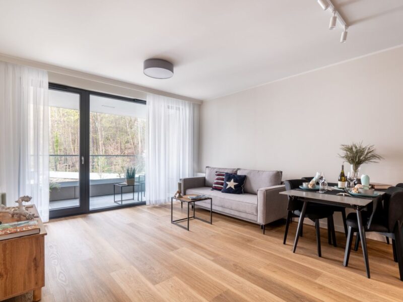 Apartament w Górnym Sopocie w inwestycji Leśna Sonata, o powierzchni 61,55 metra kwadratowego, 3 pokoje, balkon, kameralny budynek w bocznej ulicy, miejsca postojowe w hali garażowej oraz komórka. Mieszkanie nigdy nie użytkowane!