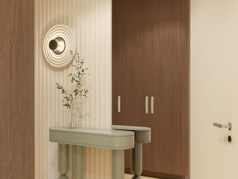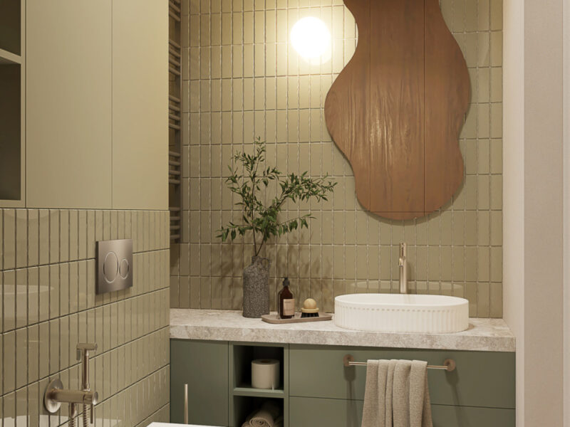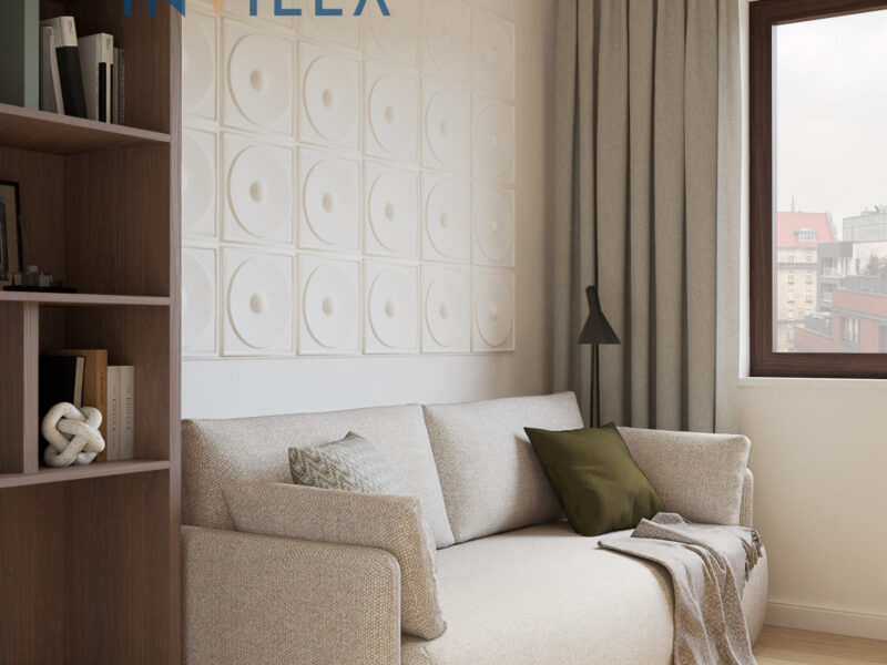 - Możliwość indywidualnego wykończenia – istnieje możliwość skorzystania z projektu aranżacji wnętrz, przygotowanego przez renomowaną pracownię architektoniczną Mikołajska Studio, co znacznie ułatwi proces urządzenia mieszkania.