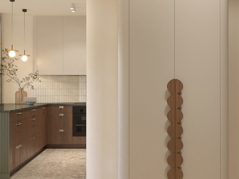 - Światło i przestrzeń – głównym atutem apartamentu są duże okna, które wypełniają wnętrze naturalnym światłem i sprawiają, że przestrzeń jest jasna i przyjemna o każdej porze dnia.