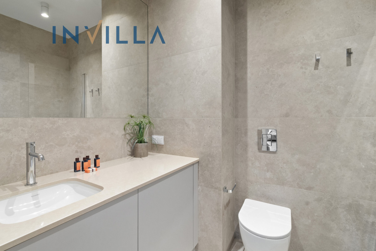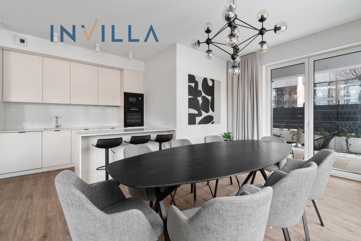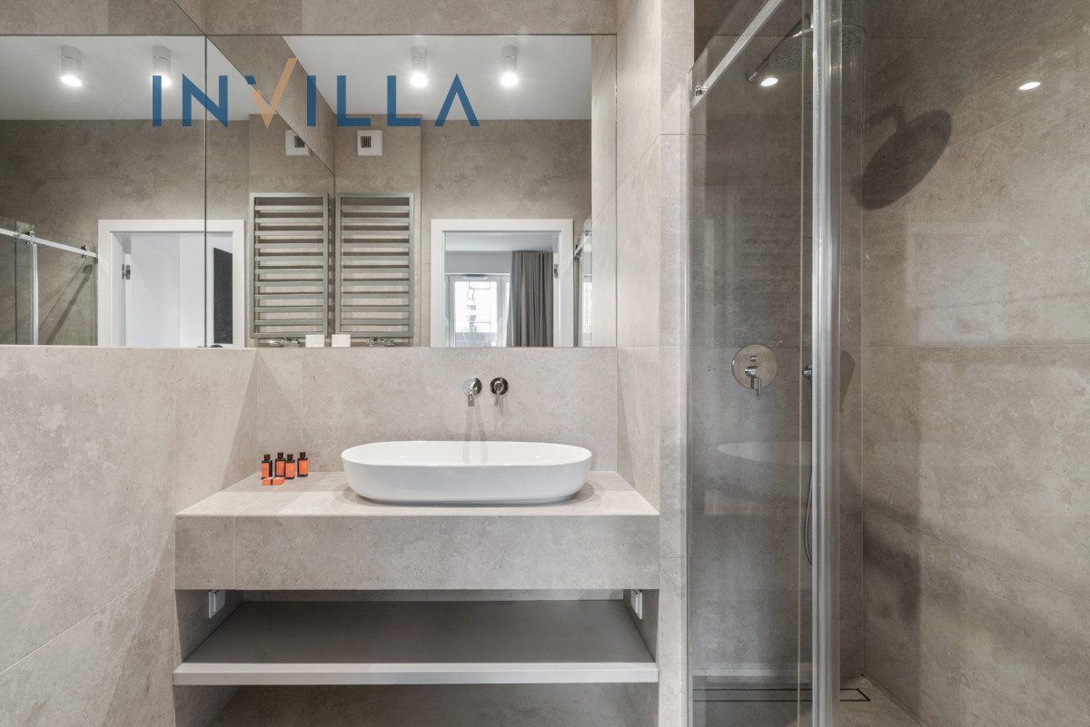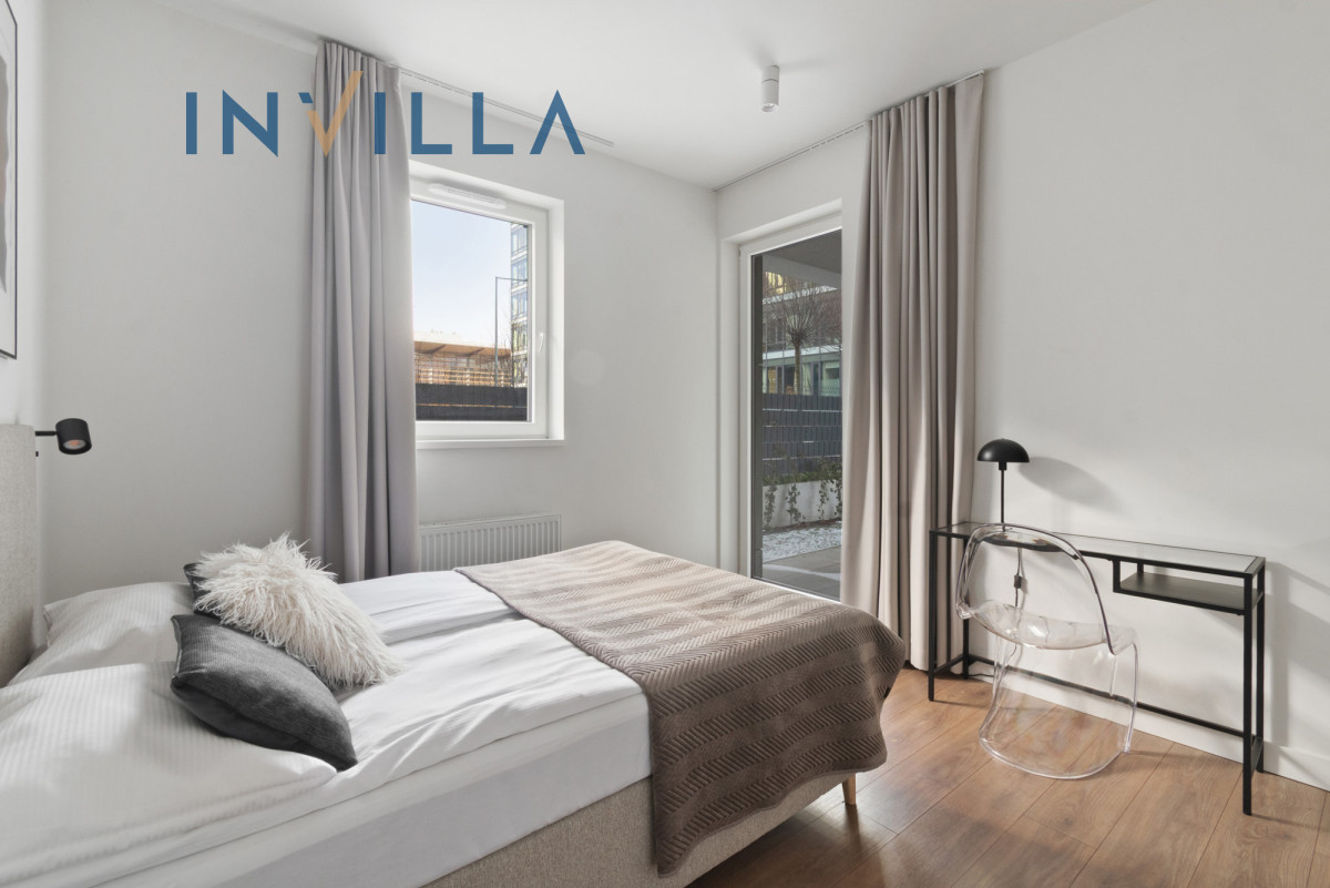The development was completed in 2023 and features modern architecture and a high standard of finish. An elegant natural stone façade and impressive, nearly 2-meter-high glazing provide the interiors with excellent lighting and a timeless character. Residents have access to a representative reception area and ground-floor retail spaces, including a restaurant. The building also features a fitness room and gym, a sauna, and sports rooms, two internal courtyards with playgrounds and a relaxation area, and a private rooftop garden exclusively for residents.