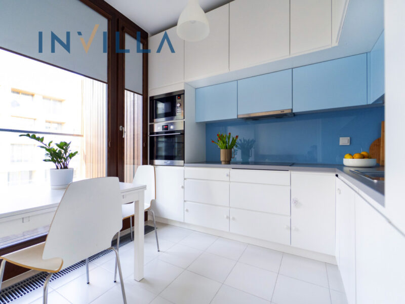 Dodatkowe zalety – mieszkanie ma bardzo funkcjonalnie zaprojektowaną kuchnię, brak mebli umożliwia nowemu właścicielowi urządzić je według własnego gustu. Loggia jest obudowana drewnem, co tworzy niezwykle przytulny klimat. Wysokość pomieszczeń to 280 cm.
