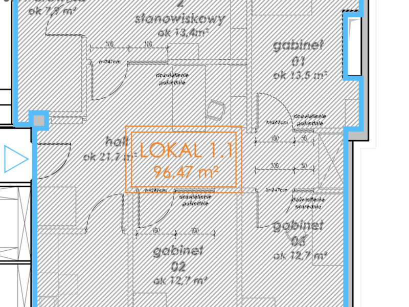 Na wynajem oferujemy powierzchnię biurową w kameralnym budynku biurowo-usługowym, łączącym prestiż historycznej architektury z nowoczesnością. To wyjątkowy obiekt gdzie zabytkowa kamienica z 1899 r. została wzbogacona nowoczesnym skrzydłem. W budynku wszelkie udogodnienia – cichobieżna winda, kontrola dostępu, zadbane części wspólne.