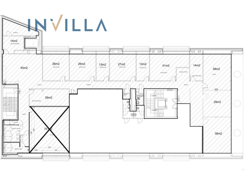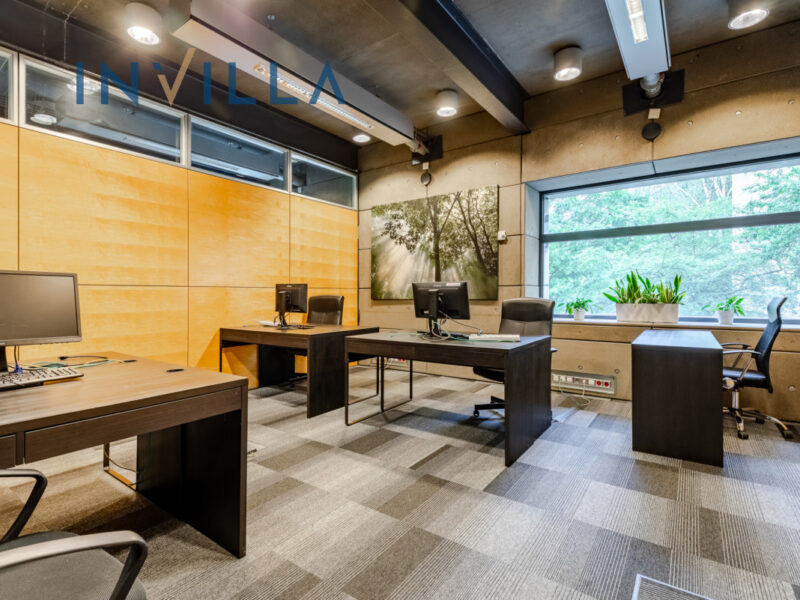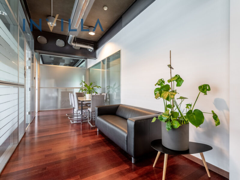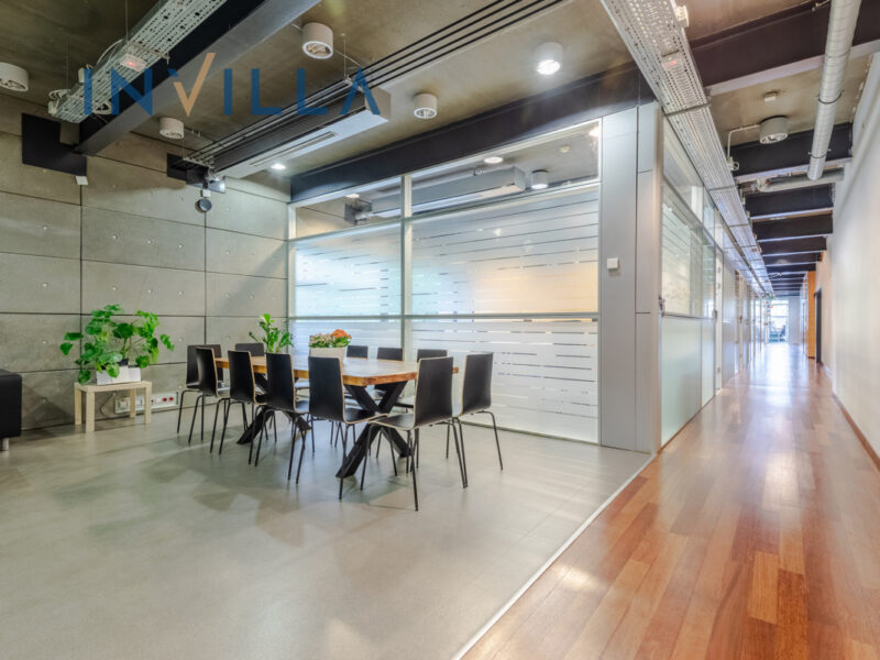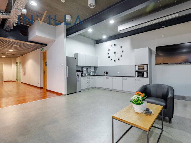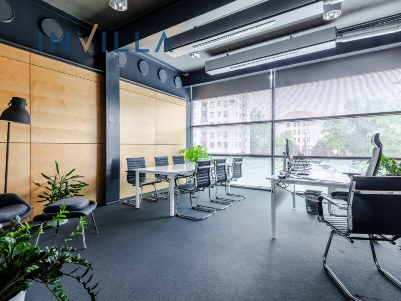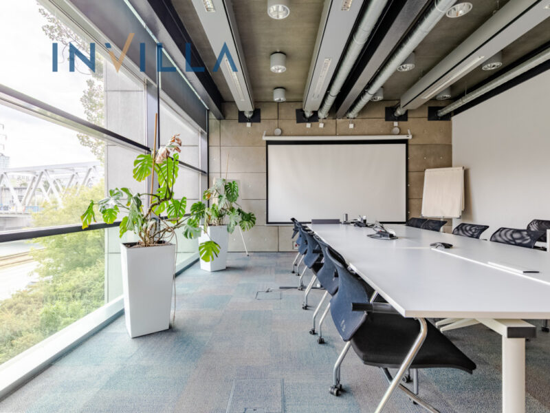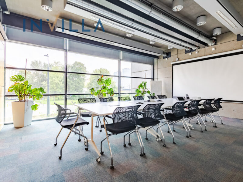 - Dodatkowe przestrzenie – 2 sale konferencyjne, przestronna kuchnia z jadalnią, zaplecze sanitarne.