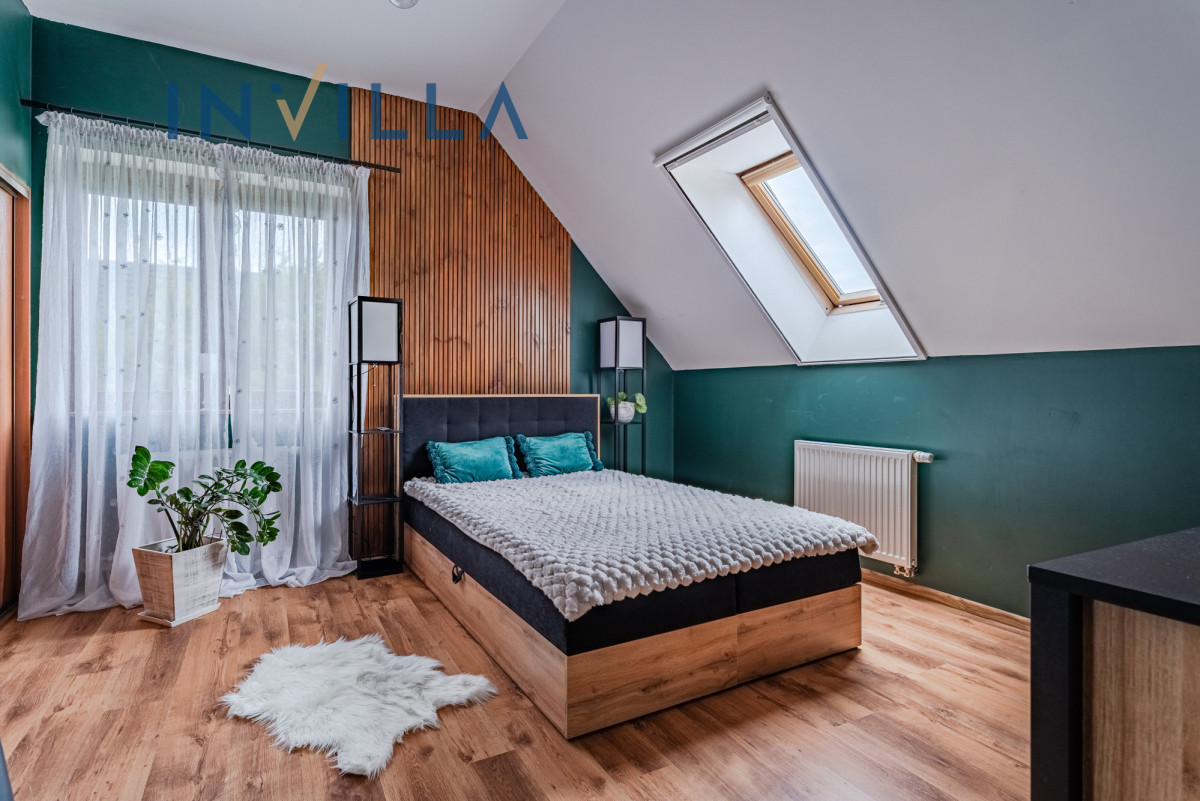 • przemyślany układ pomieszczeń – dom oferuje aż 4 sypialnie, co zapewnia wygodę zarówno rodzinie z dziećmi, jak i osobom potrzebującym dodatkowej przestrzeni na gabinet czy pokój gościnny (w tym jedna sypialnia na parterze),