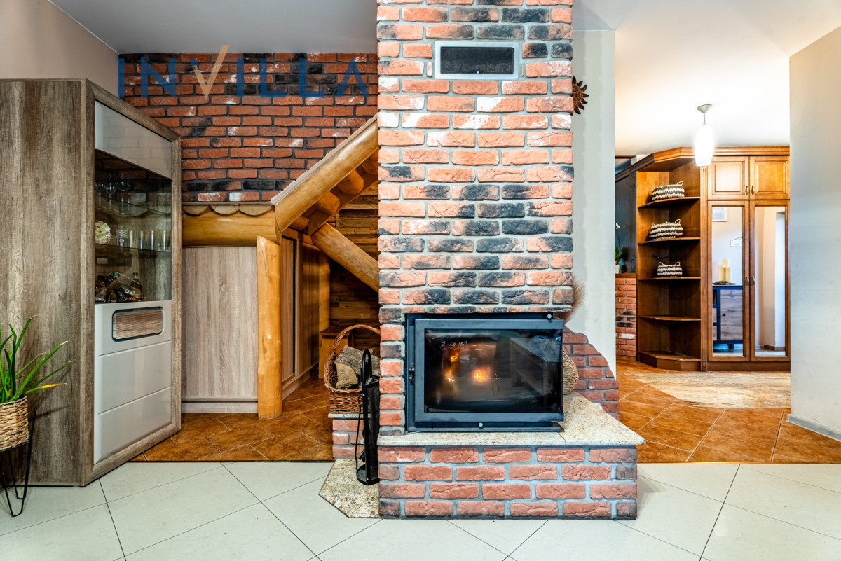• przytulny salon z kominkiem – serce domu, które wprowadza wyjątkowy klimat i stwarza idealne miejsce do wspólnego spędzania czasu,