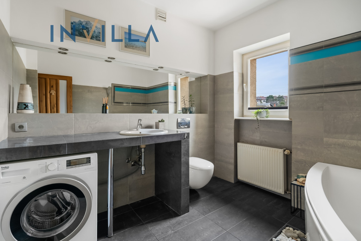 Zadbana elewacja, estetyczna aranżacja ogrodu, wypoczynkowy taras, dwa balkony, czy ogrzewanie miejskie stanowią tylko część atutów oferty. Elementami wykończenia domu są materiały wysokiej jakości jak japońskie i skandynawskie drewno, sosna, łupek czy miedź. Dom poddawany był remontom na bieżąco, dzięki czemu nie wymaga nakładów finansowych.